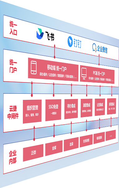 对协作平台提供支持服务,,支持企业应用与协作平台对接,,,,包含组织同步、、消息集成、、、、待办集成等。。支持目前主流的协作平台:钉钉、、、企微和飞书。。